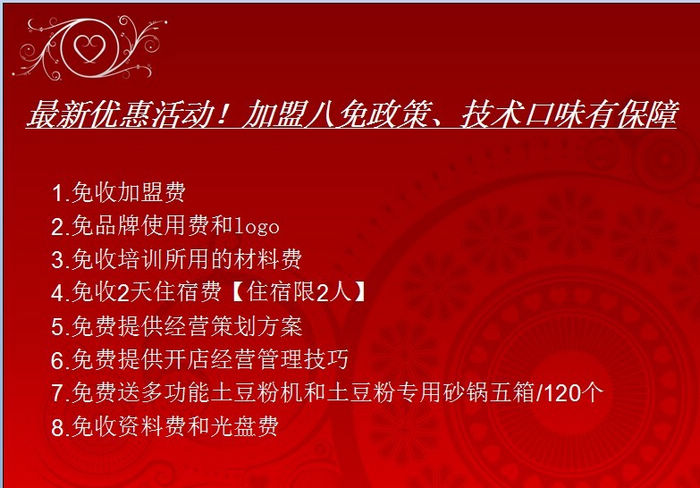 西安乐平小吃培训部公告: 可以根据需要上门培训 、前提是学员报销老师的来回路费和包食宿。为了在兔年大力推广西安乐平小吃培训部的影响力、加大我们新型小吃技术的宣传力度。从2016年1月16日起凡是来学习的每家学员,如果做地区总代理、都可以获得我们赠送价值千元的5代不锈钢空心土豆粉刀片一个!还送您土豆粉机、再送配方和料单店内广告制作资料拷贝一套。学完后再次送专用削面刀一把、专用配料勺2个、专用打饼擀面杖一个。一次学习、终身受益!如今想要给您的就是一个千载难逢的创业机会;全国23个省、50个地区、655个城市,每个省、每个地区、每个城市我们只要求有一个5代空心土豆粉区域总代理;正所谓蝎子的屁眼,独门,本地垄断经营的机会只有一个,不是你的,就是别人的。只有先行一步,把握机会,人生才不会有遗憾!如果您渴望成功,如果您满腔激情,那么现在就加入我们,我们愿与有远大抱负的您一起携手,成为绝无仅有的唯一!